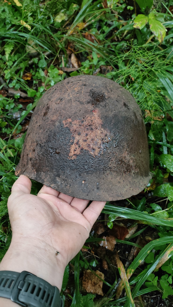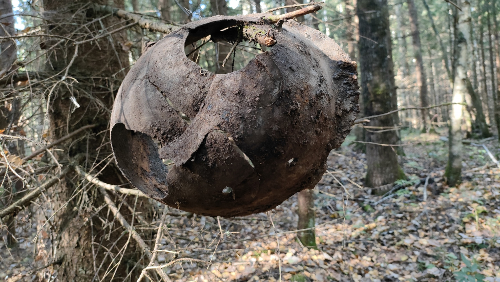 В оставшиеся рабочие дни отправились в место, на которое вышли в последний день прошлой экспедиции. Встречались каски, саперные лопатки, но за останки бойцов зацепиться так и не удалось.